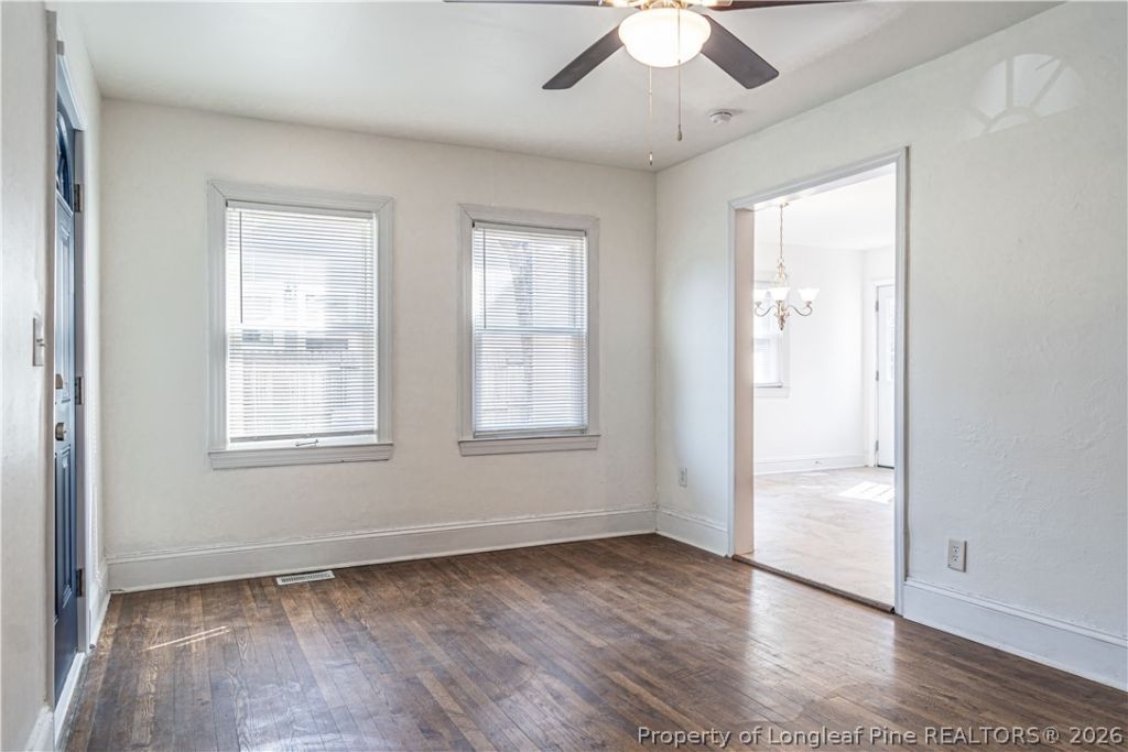 Charming, move-in ready home in desirable Cumberland Heights ??? perfect for a first-time homebuyer or investment opportunity. The updated kitchen features stainless steel appliances, refreshed cabinetry, modern countertops, and a dedicated dining area. Two generously sized bedrooms offer comfortable living space, while the spacious backyard provides room to relax or entertain. Ideally located in the Terry Sanford School District and just minutes from Fort Bragg, Haymount, and Downtown Fayetteville. Enjoy the convenience of a neighborhood park located directly across the street.