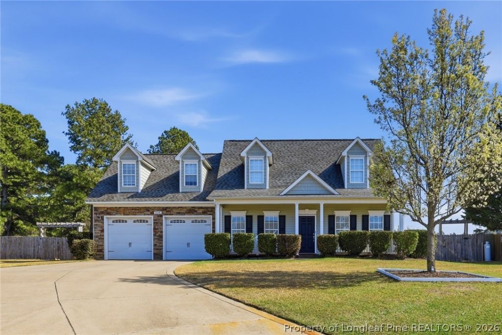 Welcome to Steeplechase at McCain -- where country living meets everyday convenience! This beautifully maintained two-story home sits on a quiet cul-de-sac and offers the perfect blend of space, comfort, and charm. Conveniently located near Fort Bragg, Camp Mackall, Aberdeen, Southern Pines, Pinehurst, and Fayetteville. The main level features a spacious family room with a cozy gas log fireplace, formal dining room, eat-in kitchen with stainless appliances and pantry, laundry room, and half bath. Upstairs youll find all three bedrooms, including a generous primary suite with separate his-and-hers vanities, garden tub, walk-in shower, and walk-in closet. A large bonus room with closet offers flexible space for a fourth bedroom, office, or playroom. Nature lovers and entertainers alike will fall in love with the backyard -- fully fenced and featuring a screened porch, patio, fire pit, garden area, six producing fruit trees including peach and pear, and a separately fenced dog run. The Brinks security system adds peace of mind. Two-car attached garage, rocking chair front porch, and backs up to a green space pasture. A must-see!