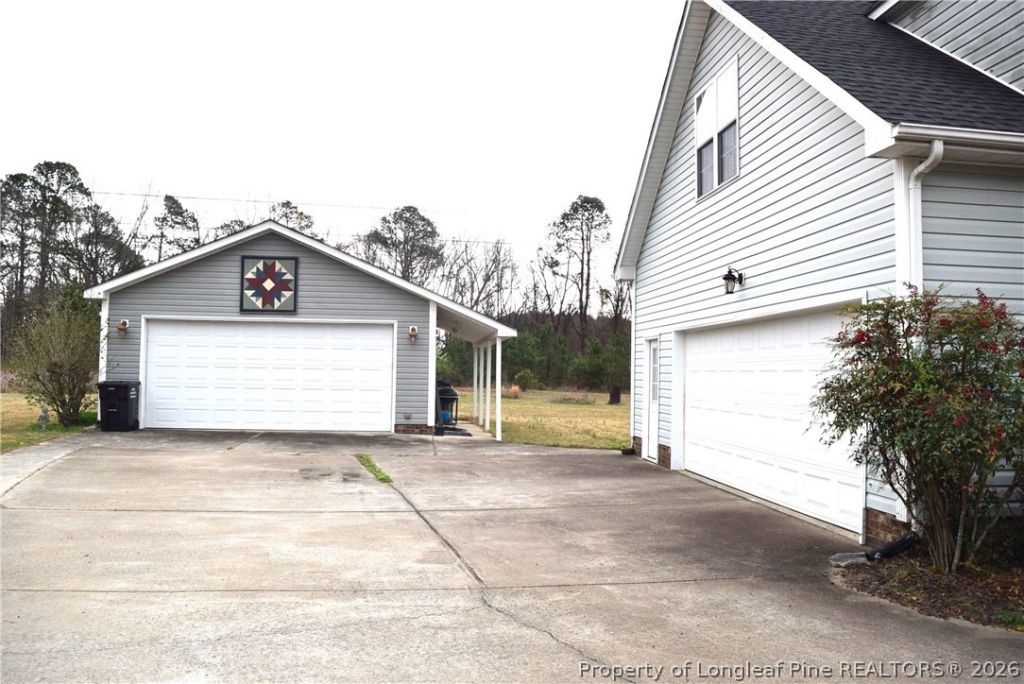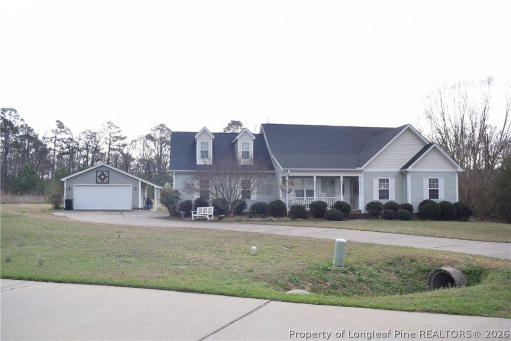 You will fall in love with this home as soon as you walk in. Newly painted and new floors throughout. The .48 acre lot feels much larger with an open back lot that has a power line easement. The 4th bedroom or a bonus room is upstair. There is a full bath upstairs. You could finish the spacious attic space and have an amazing master suite or make it an in-law living quarters. Enjoy any season on the private screened back porch. The double detached garage/shop has hot and cold water running to the inside utility sink plus plumbed for a bathroom. The shop is suitable for a workshop, craft room, game room or to park your toys or vehicles. The washer & dryer are remaining as gifts to buyer. The Whirlpool refrigerator will be switched out with the LG fridge in the garage. You will enjoy the tankless water heater. Seller will remove the propane gas tank. Buyer will need to lease or purchase a new gas tank. This property is an easy drive to Raleigh, Cary, Apex, Dunn, Fayetteville and Sanford. The 4 bedrooms & 3 full baths will fit any buyer. This beautiful home offers a feel of privacy situated in the cul-de-sac.
