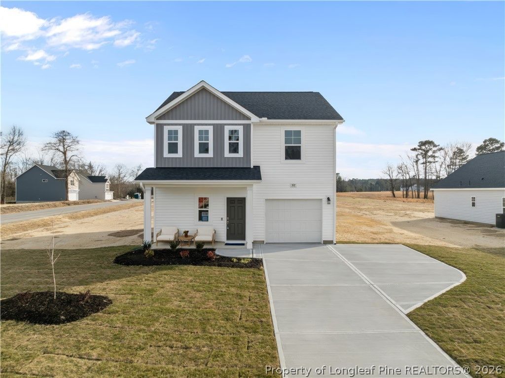 $10,000 incentive to Use-As-You-Choose using the preferred lender-must close by May 31, 2026! Welcome to the Hinton! This home is on a spacious 0.51-acre corner lot, this home welcomes you with a charming covered front porch & a bright, open great room. The kitchen granite countertops, large island with sink, SS appliances & a walk-in pantry. From the dining space, step out onto the grill patio???perfect for outdoor dining or relaxing. Upstairs, all bedrooms are thoughtfully placed for privacy & comfort. A generous loft offers flexible space for a media room, playroom, or study. The primary suite features a tray ceiling & an en-suite bath with dual vanity, walk-in shower, linen closet, and access to the spacious WIC. Two additional bedrooms share a full hall bath with a vanity & tub/shower combo. Exterior highlights include low-maintenance vinyl siding, smart keypad entry, and a 1-car garage. Additional features include fiber optic internet availability, Energy Plus certification, and a 1-2-10 builder in-house warranty. Welcome to Ducks Landing???a charming community in the peaceful countryside of Lillington, NC, featuring planned amenities like a tot lot, dog park, and picnic area, all with convenient access to Lillington, Fort Bragg(20 min.), Raleigh, and Fayetteville.