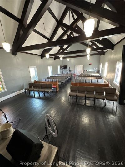 This beautifully maintained church features a spacious sanctuary, classrooms, offices, and dining areas ideal for ministry or community use. The classic sanctuary seats about 200, including altar and choir space, with a large kitchen and fellowship hall conveniently located behind it. A welcoming foyer includes a sitting area and two restrooms. Down the hall are two additional bathrooms, a large multipurpose room with a full kitchen and additional bathroom, plus seven flexible classrooms for meetings or programs???one of which also has its own restroom. The property offers a sizable basement with another bathroom, ample storage, and many updates throughout. Outside is a paved parking lot with 40+ spaces and an extra parcel of land behind the church for future use or expansion. This move-in-ready facility is perfect for a congregation or community organization. Chairs are negotiable. Contact Lamontico Melvin ??? Grant-Murray Homes at 910-549-0138 for details.